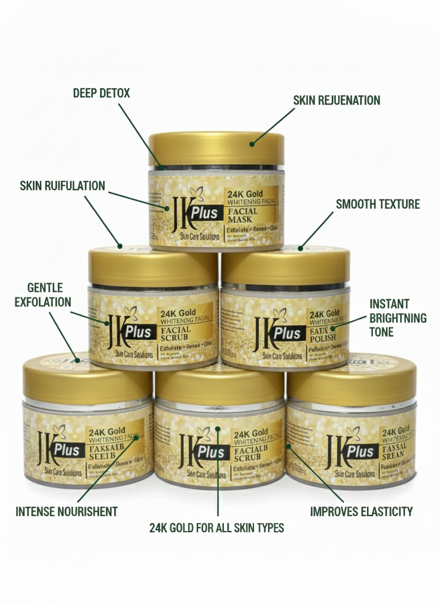 JK Plus Provide Best comprehensive skincare with the JKPlus 24K GOLD Whitening Facial Kit.