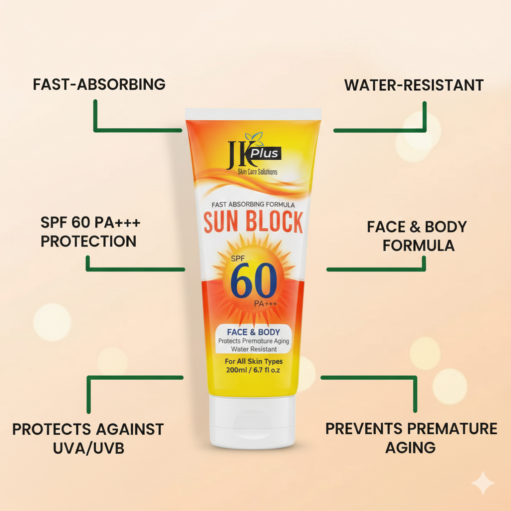 The JKPlus Vitamin C Sun BlockΒ  is the perfect start to your skincare routine. Specially formulated, it effectively removes dirt, excess oil, and makeup residue from your skin, leaving it feeling clean, refreshed, and healthy.